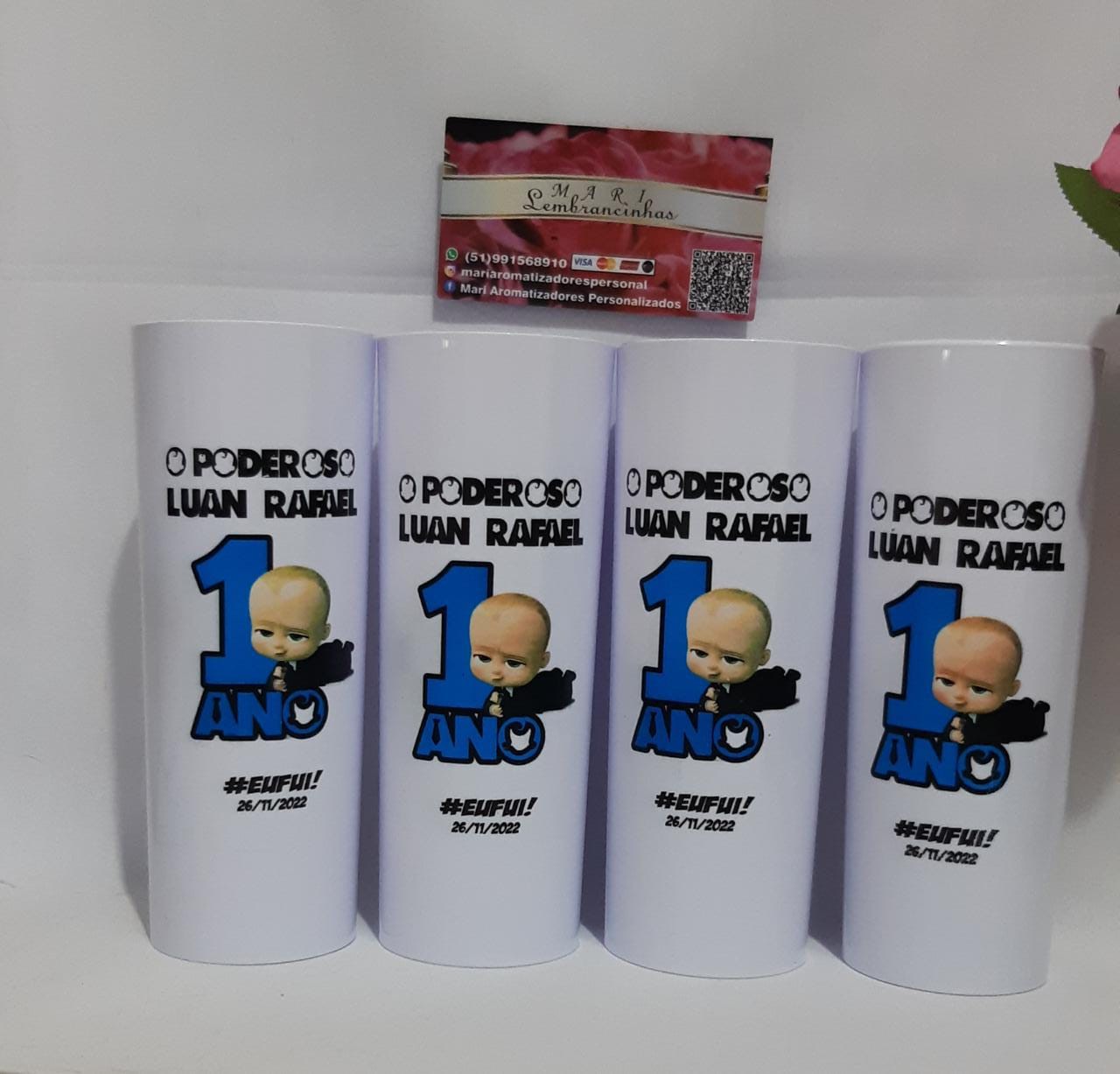 Personalizamos com tema, nome e idade.